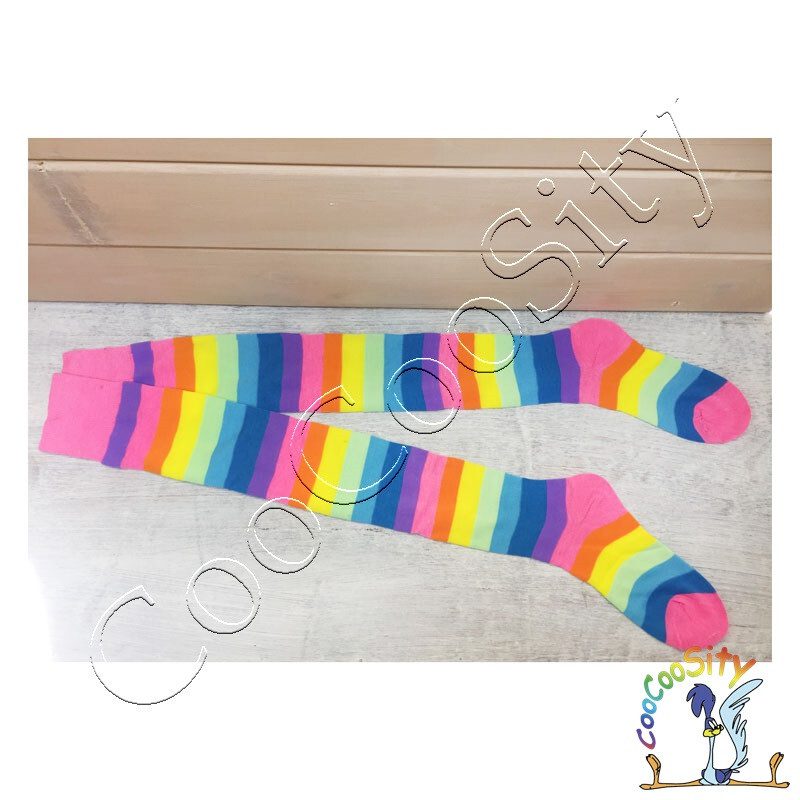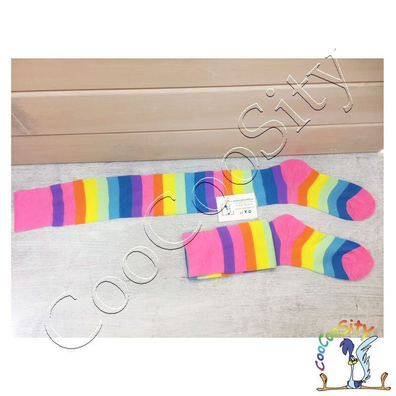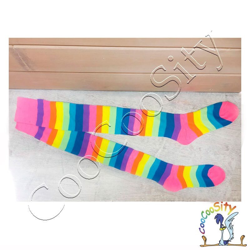 Плотные чулки карнавальные полосатые разноцветные светлые