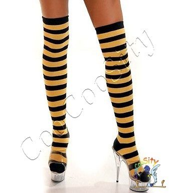 Полосатые желто-черные чулки смогут стать хорошим дополнением к различным костюмам.