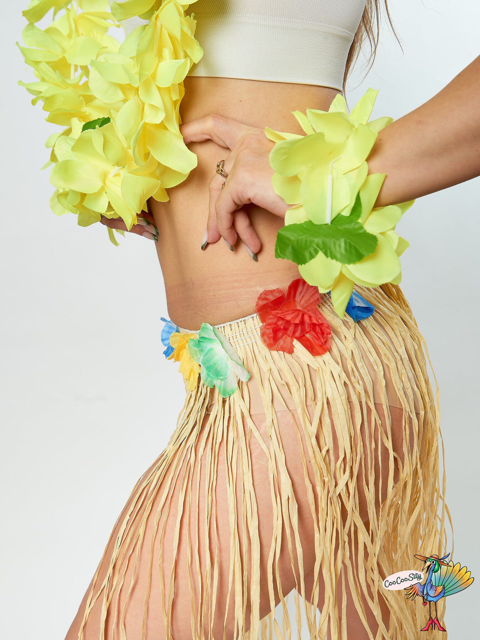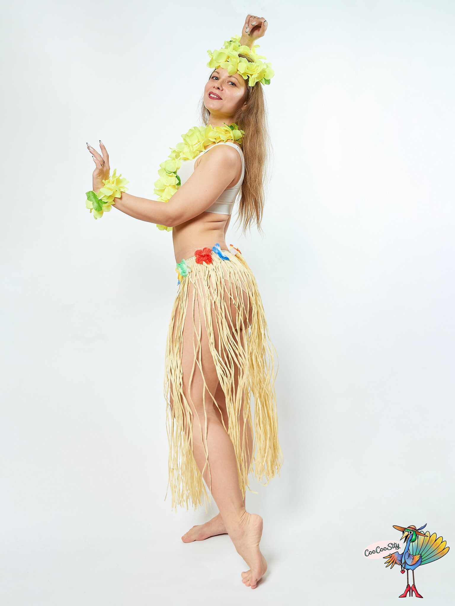 Юбка изготовлена из натуральной рвафии (натуральное волокно, которое производят из листьев пальмы)