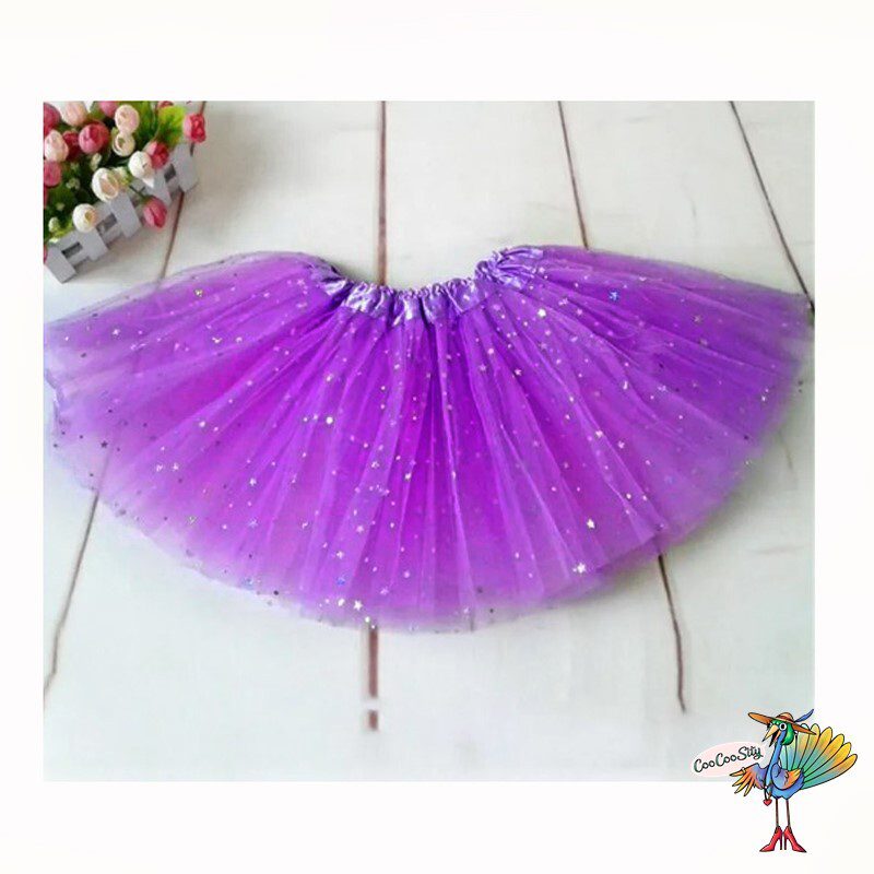 юбка туту детская фиолетовая в звездах, длина 29 см, 3 слоя, фатин