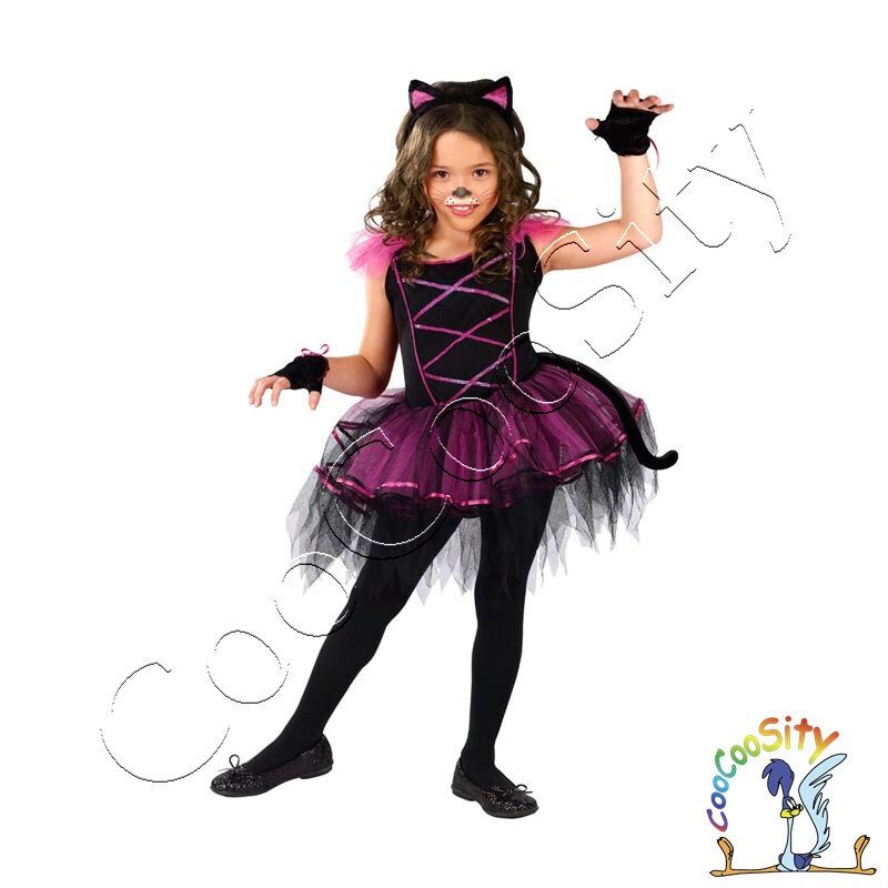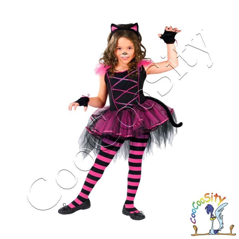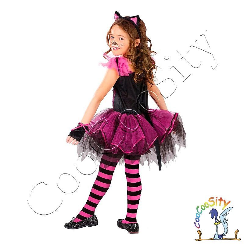 В коплект входит платье состоящее из топа черного цвета с розовой шнуровкой ирозово-черной пышной юбочки с хвостом и ушки. Отправляйте вашу девочку веселиться в таком наряде, она точно будет довольна праздником.