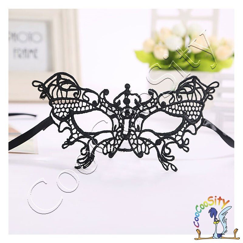 Маска кружевная Бабочка, черная, текстиль