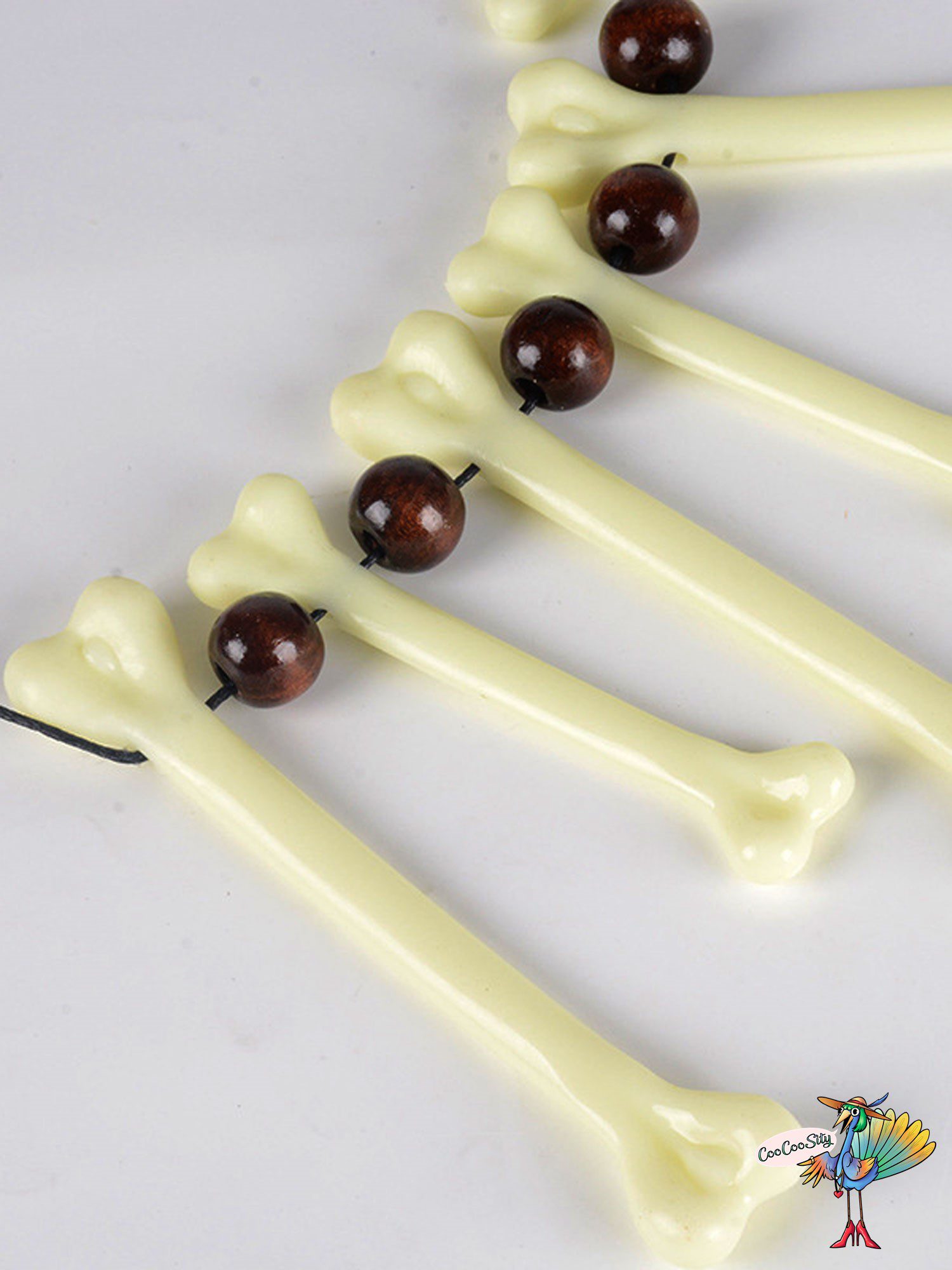 Ожерелье «Кости» — стильный аксессуар для любителей первобытной тематики. Оно идеально подойдёт для тематических вечеринок, театральных постановок. Ожерелье выполнено из качественных материалов и имеет удобный размер, который подойдёт для любого типа шеи. Размер: общая длина с веревкой 60 см, высота кости 10 см, ширина кости 1,5 см.