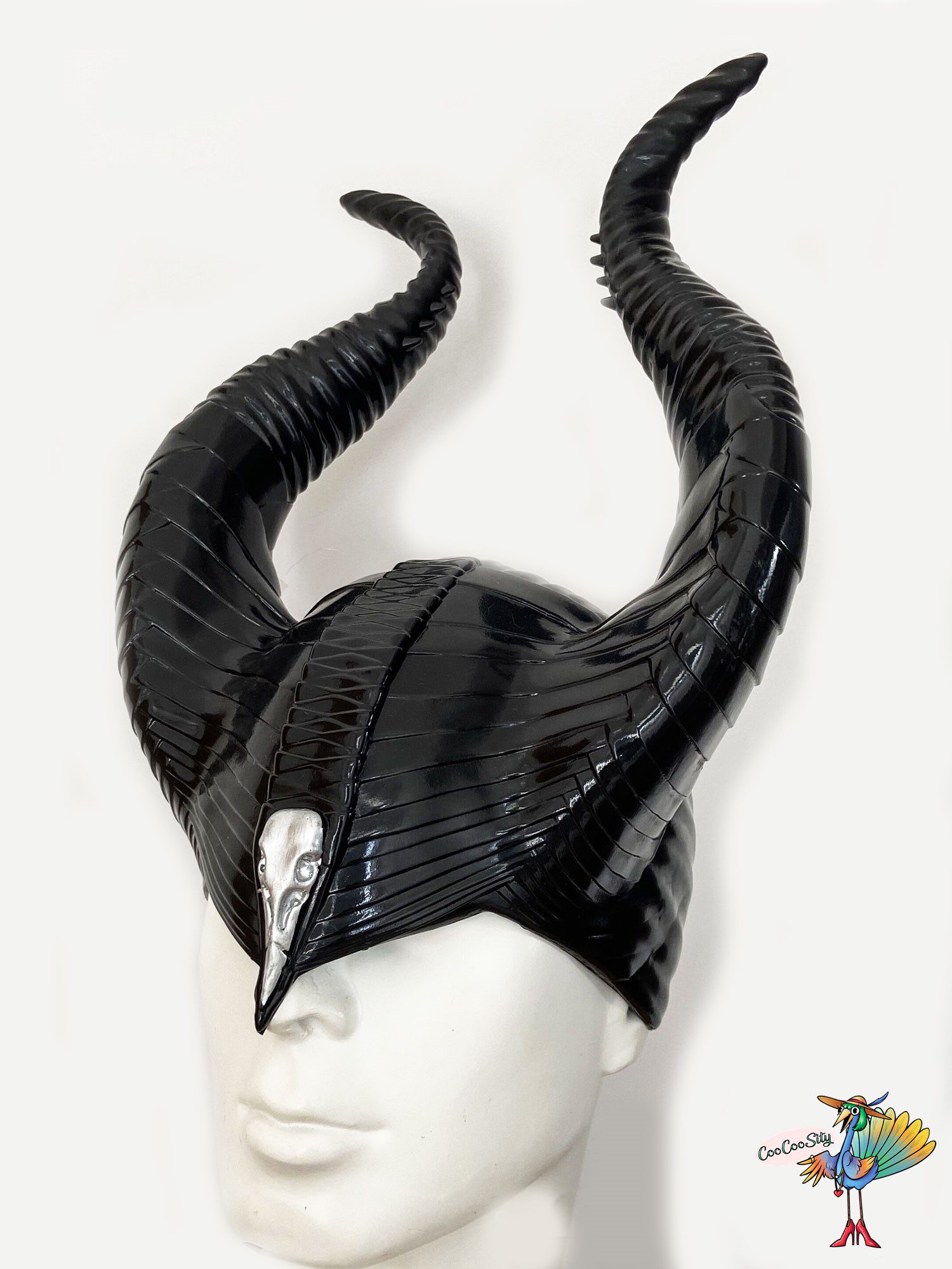 черные рога Малефисенты декорированы серебряным черепом на лбу.