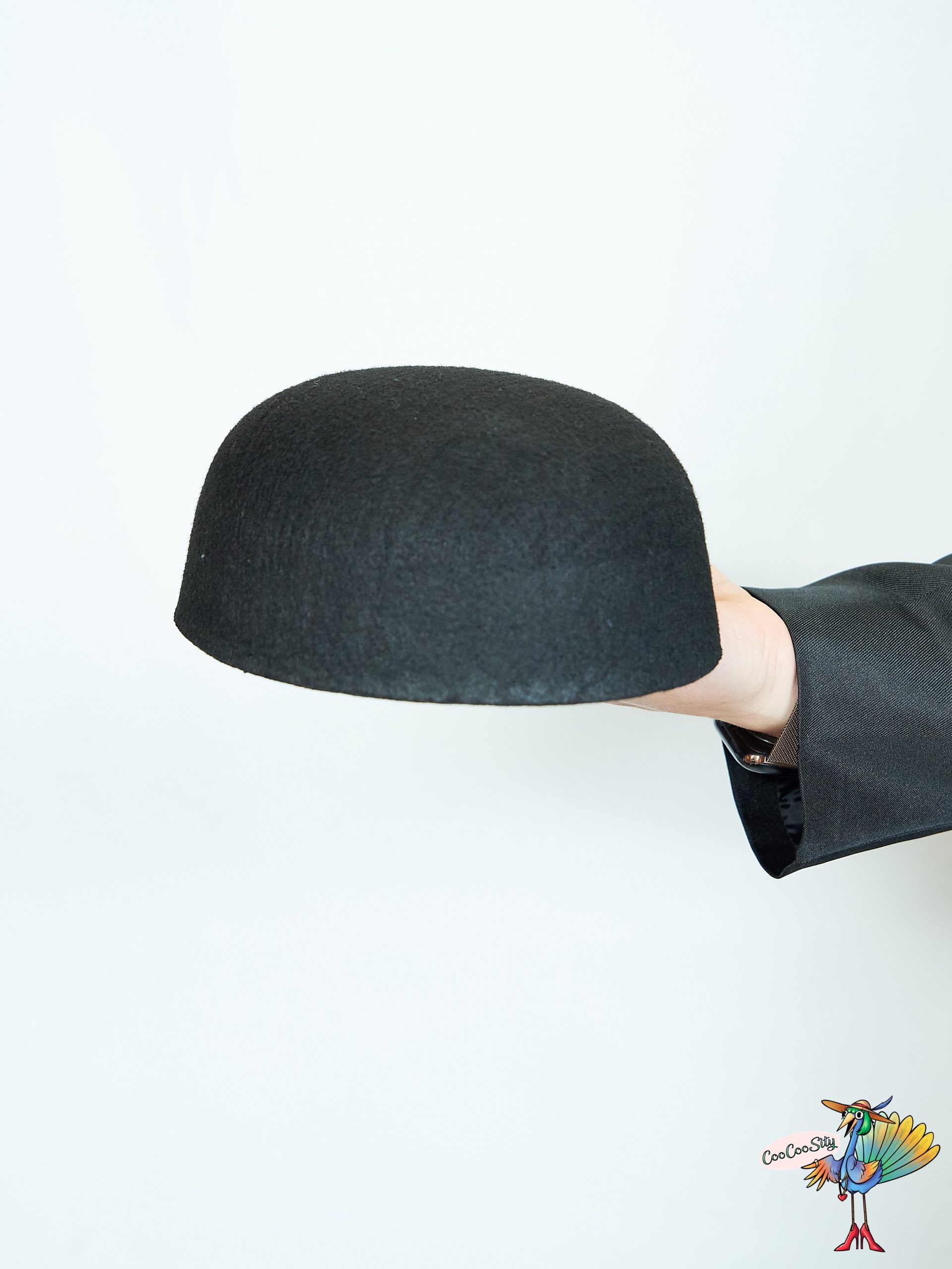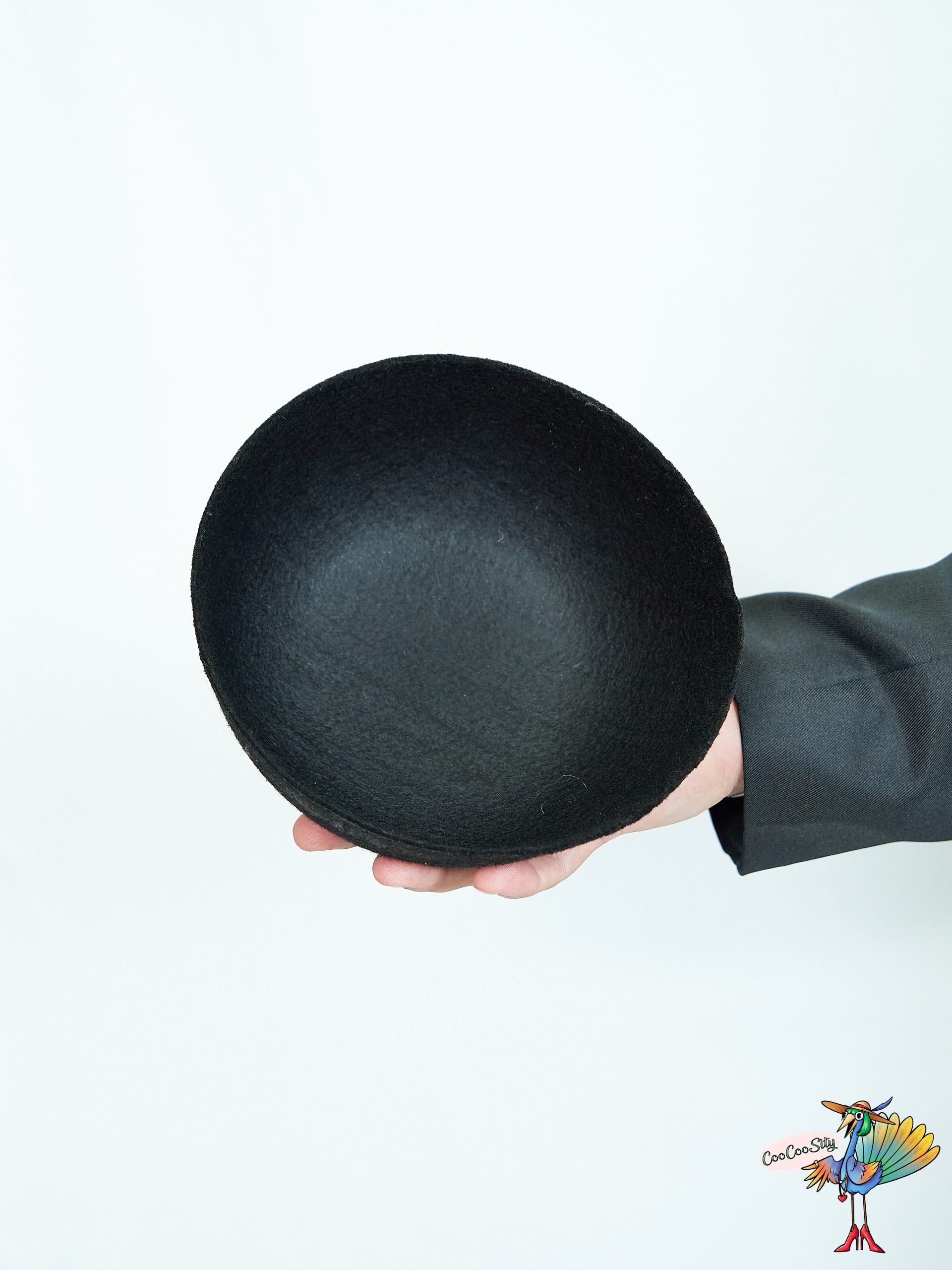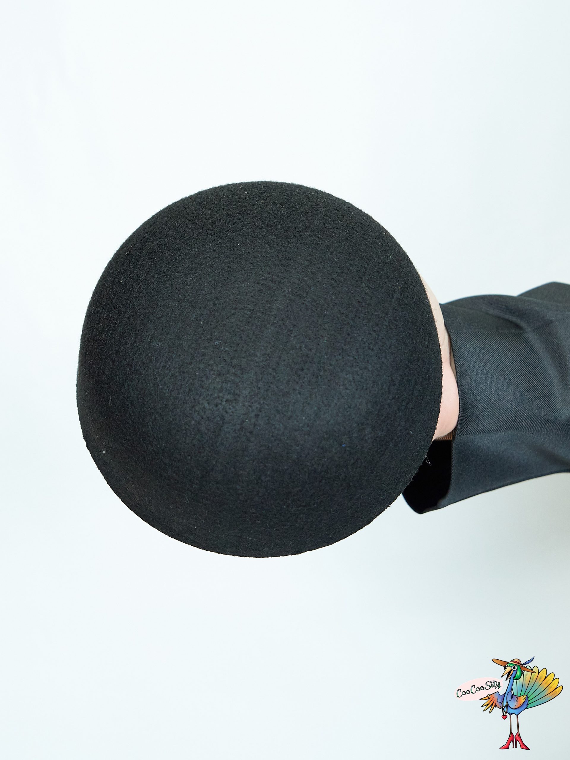 Шляпа круглая черная, фетр, высота 10 см