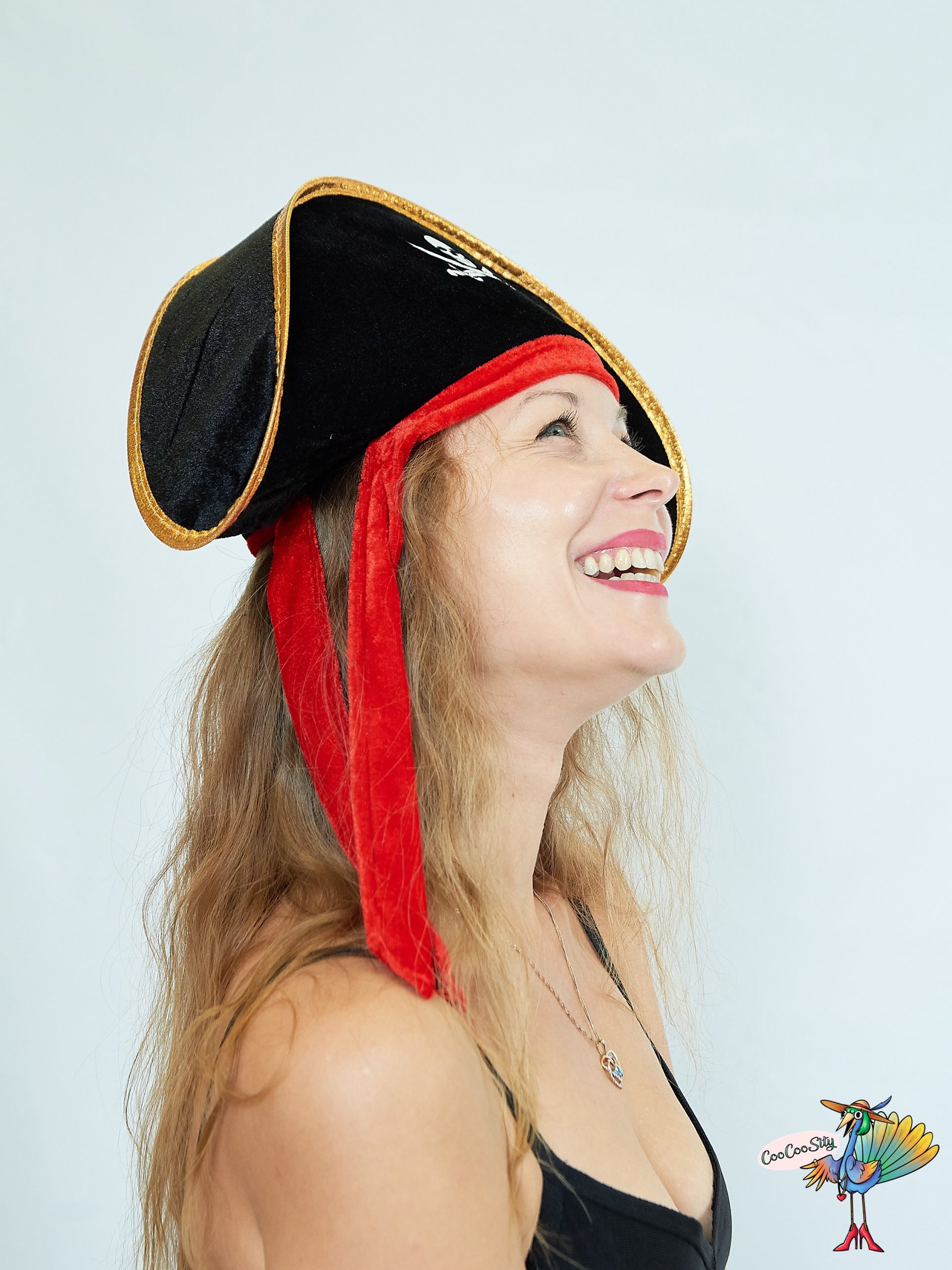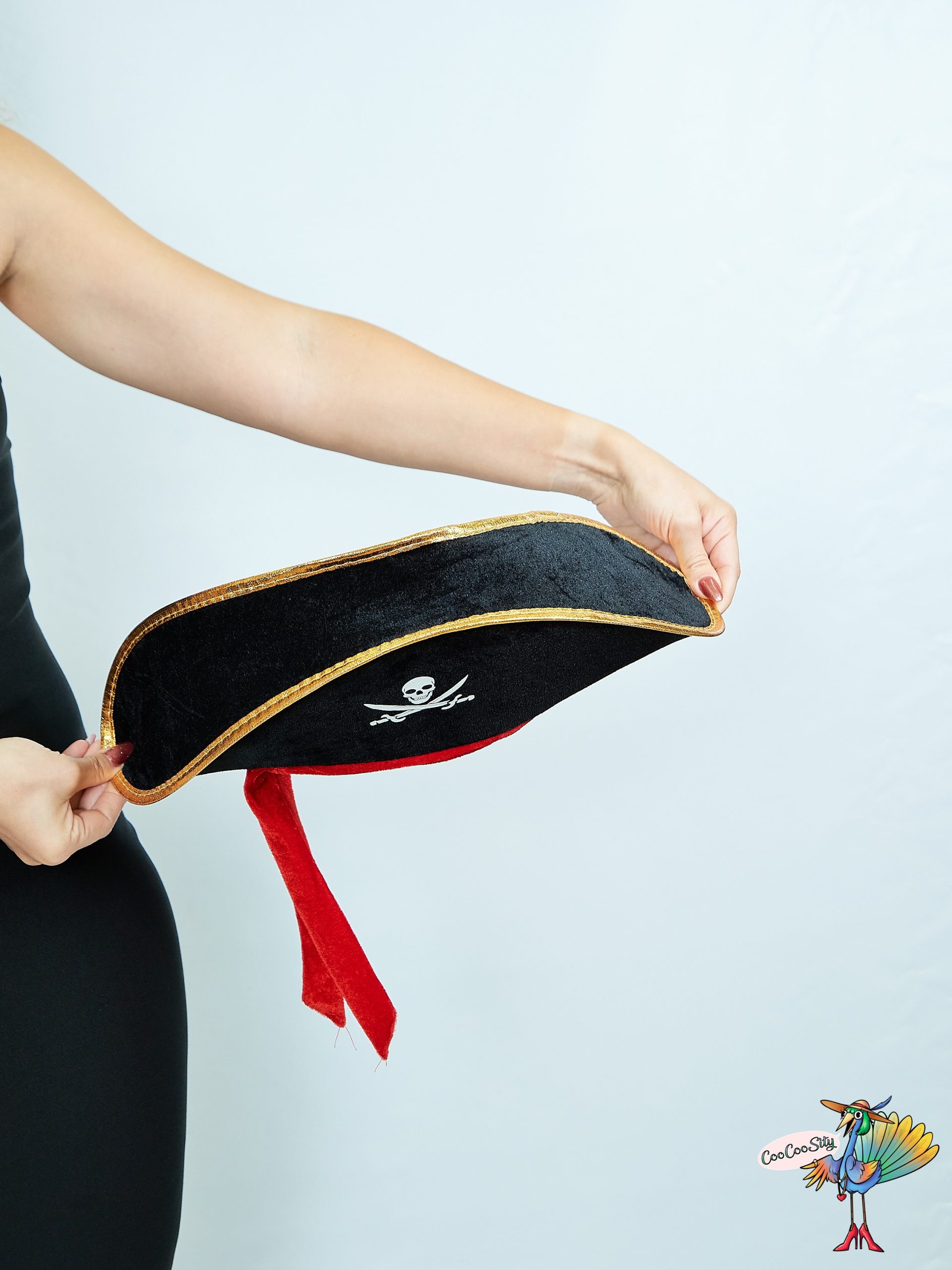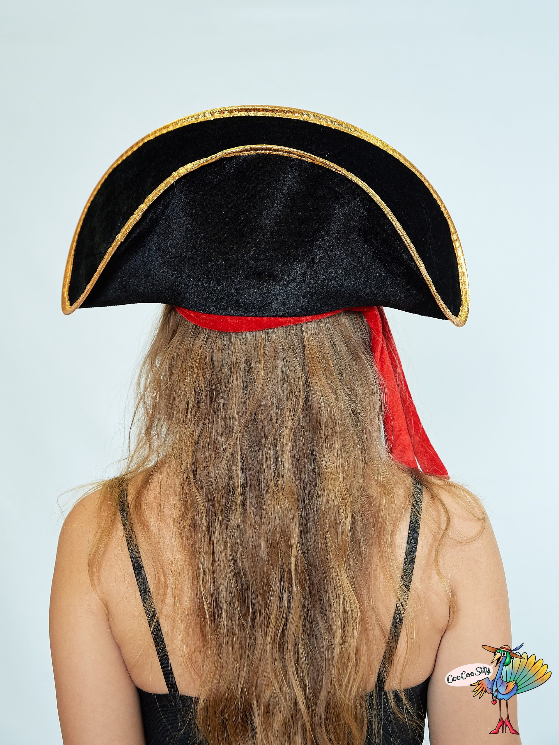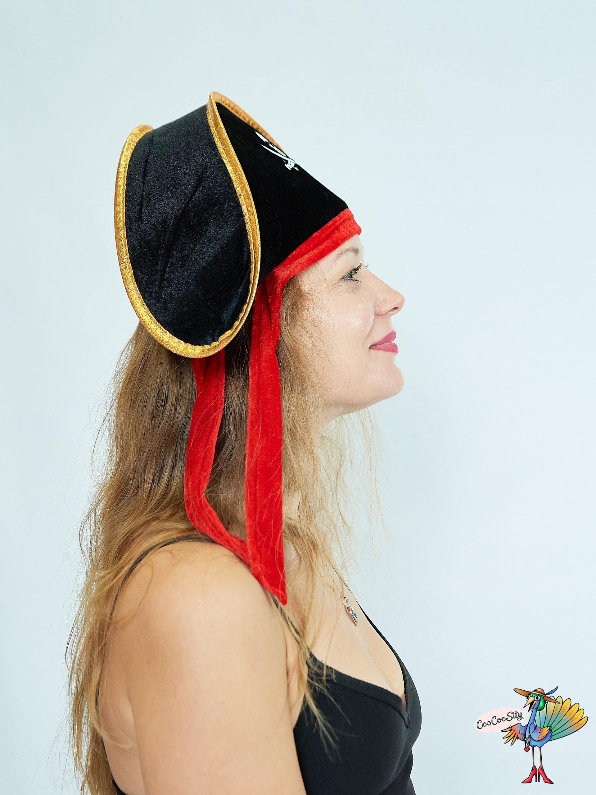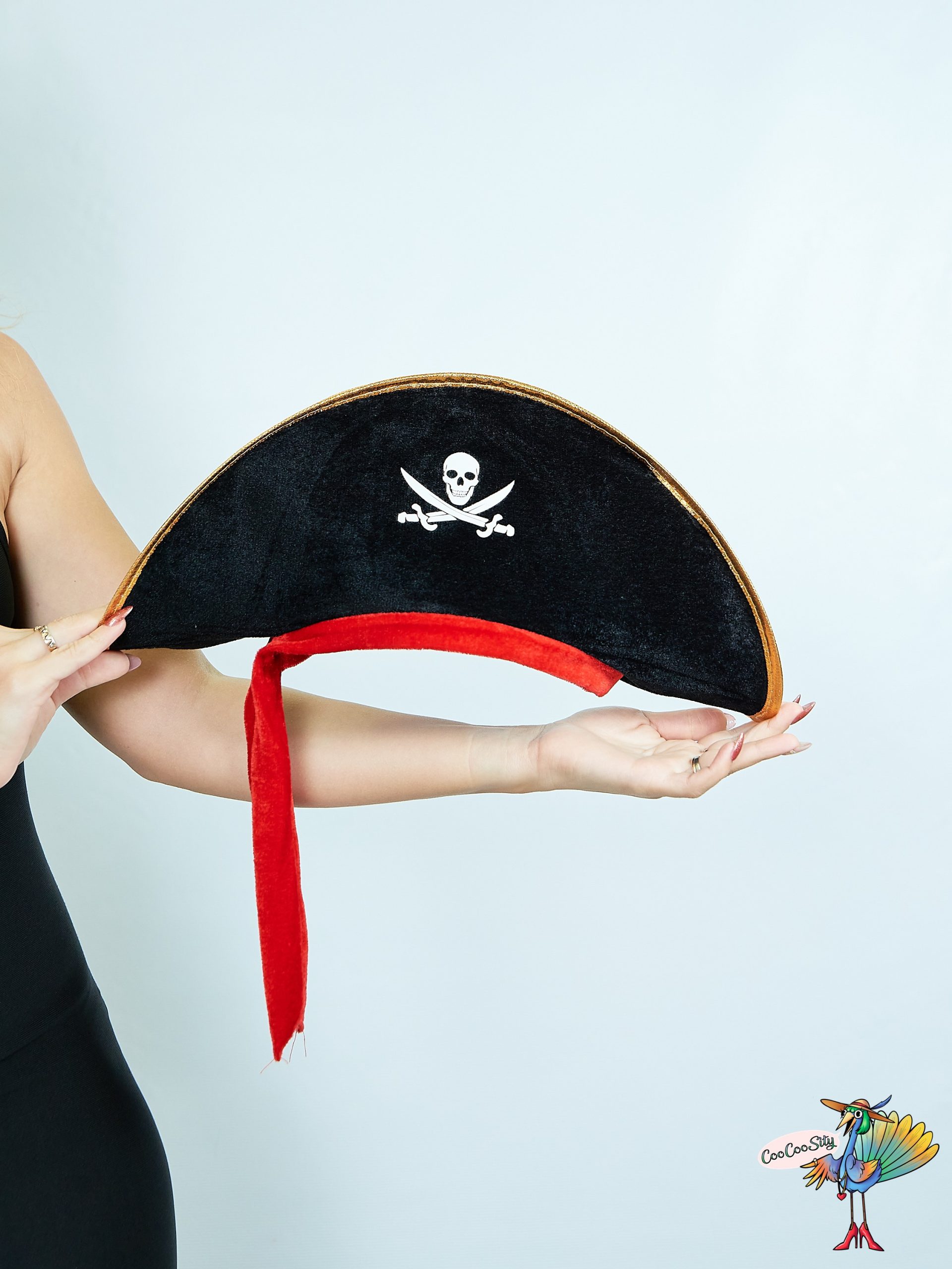 шляпа Пиратская с красной завязкой, бархат, высота 18см, обхват головы 50-22см