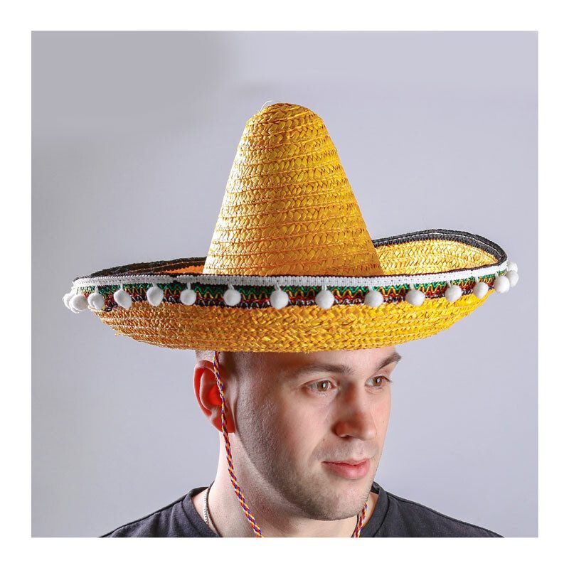 шляпа Сомбреро желтая, 43 х 23 см, текстиль, солома