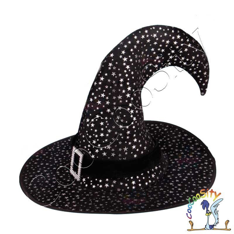 шляпа ведьмы Бархат черная в серебряную звезду, текстиль