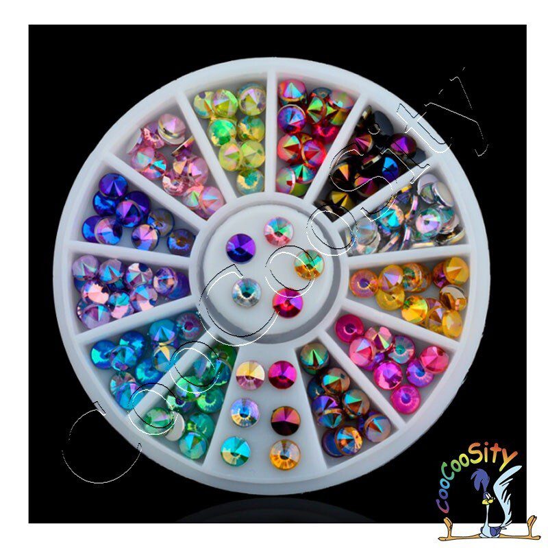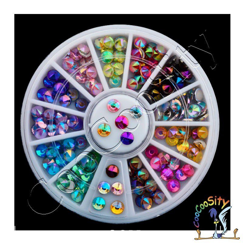 Украшение для маникюра в колесе Стразы конус, 12 цветов, акрил